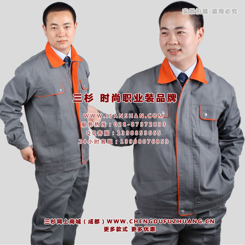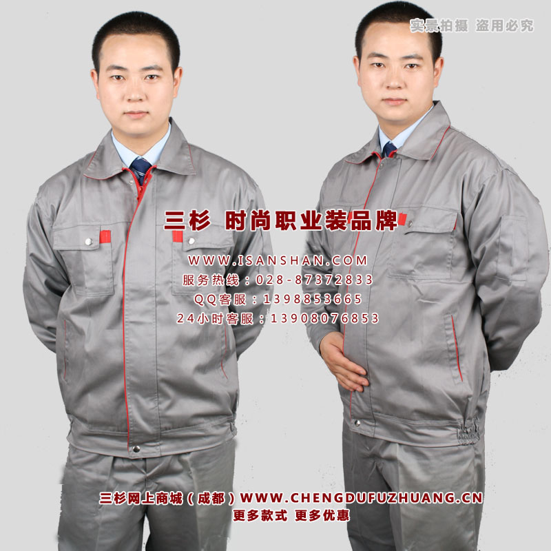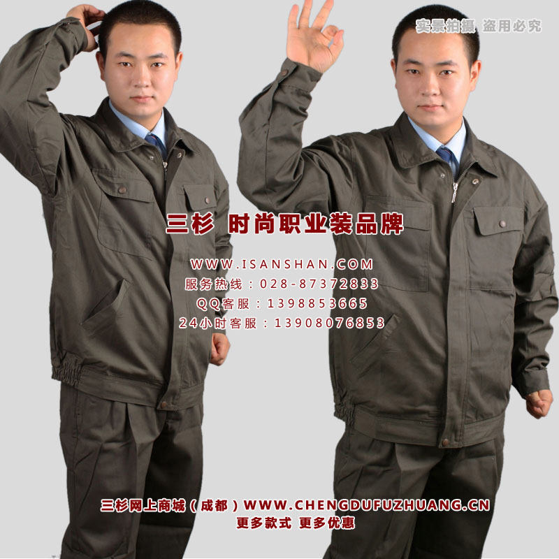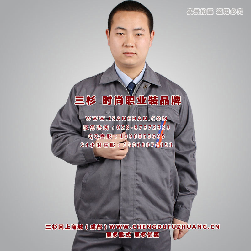 成都长袖工作服定购,灰色涤棉精品工作服,时尚、做工好